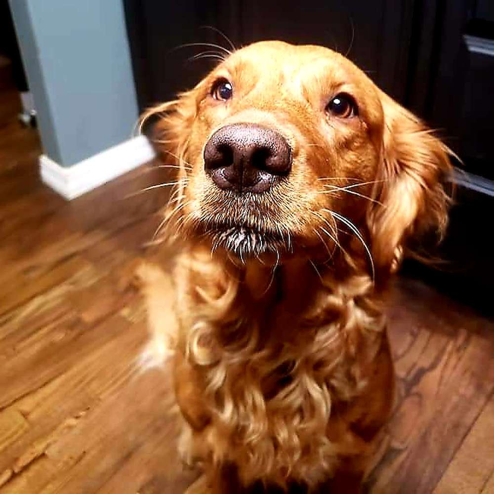 Lilly is a red field golden with a curly coat. She is eager to please and enjoys retrieving anything .